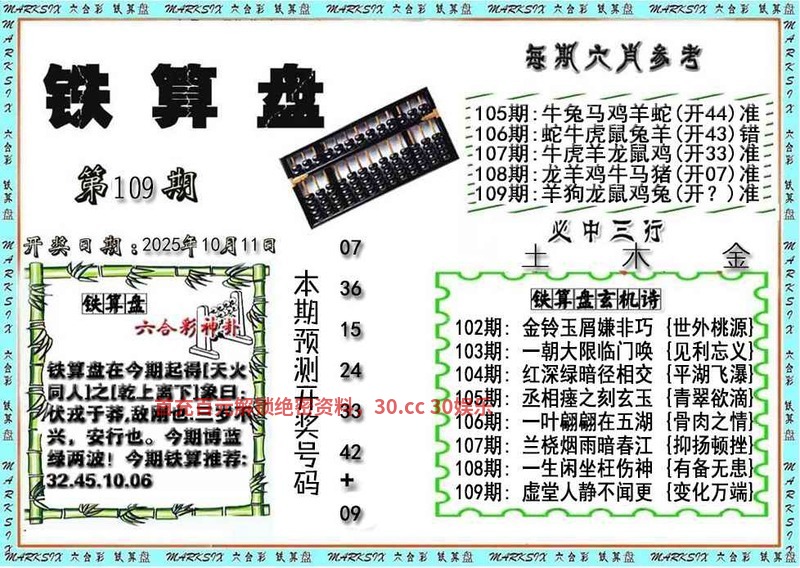 109期:七肖中特【牛虎兔鼠龙猴开:猪07准